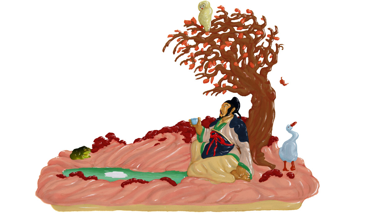 In het eerste hoofdstuk van De droom van de rode kamer, de achttiende-eeuwse romanklassieker van Cao Xueqin, komt een beroemd lied voor waarin de taoïstisch-boeddhistische kern van het boek wordt verwoord. ‘Het lied van weten en vergeten’ heet het in onze vorig jaar verschenen vertaling, en met ons bedoel ik Anne Sytske Keijser, Silvia Marijnissen en ondergetekende. Het wordt ten gehore gebracht door een ‘manke taoïst’, ‘een zonderlinge verschijning in verstelde kleren en vlassandalen’, die meermalen in het boek, soms ‘lallend en zwierend’, de aardlingen een wenk ‘van boven’ komt geven, vaak verzegeld van een al even raadselachtige boeddhistische monnik.