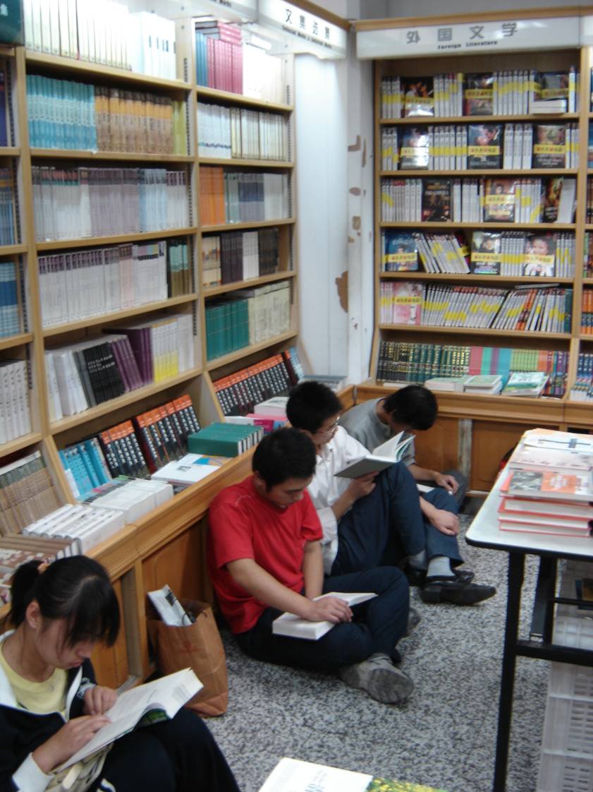 De grote boekenwarenhuizen zijn dan ook niet alleen gevuld met de vele gretige lezers die China van oudsher kent, maar bieden vooral ruimte aan de enorm uitdijende boekenmarkt. In 2004 verschenen er in China zo’n 170.000 titels, waarvan de helft educatief. Daar zaten zeker 1000 nieuwe Chinese romans bij, terwijl nog een veelvoud ervan verscheen op het internet, dat ondanks staatsfiltering een levendig alternatief circuit vormt, bijvoorbeeld voor homoliteratuur. Buitenlandse bedrijven azen op mogelijkheden – er is al een Chinese Bol.com, en Amazon heeft Joyo.com gekocht – al krijgen zij wel te maken met een gebrekkige auteurswet en de plaag van piratenuitgaven.