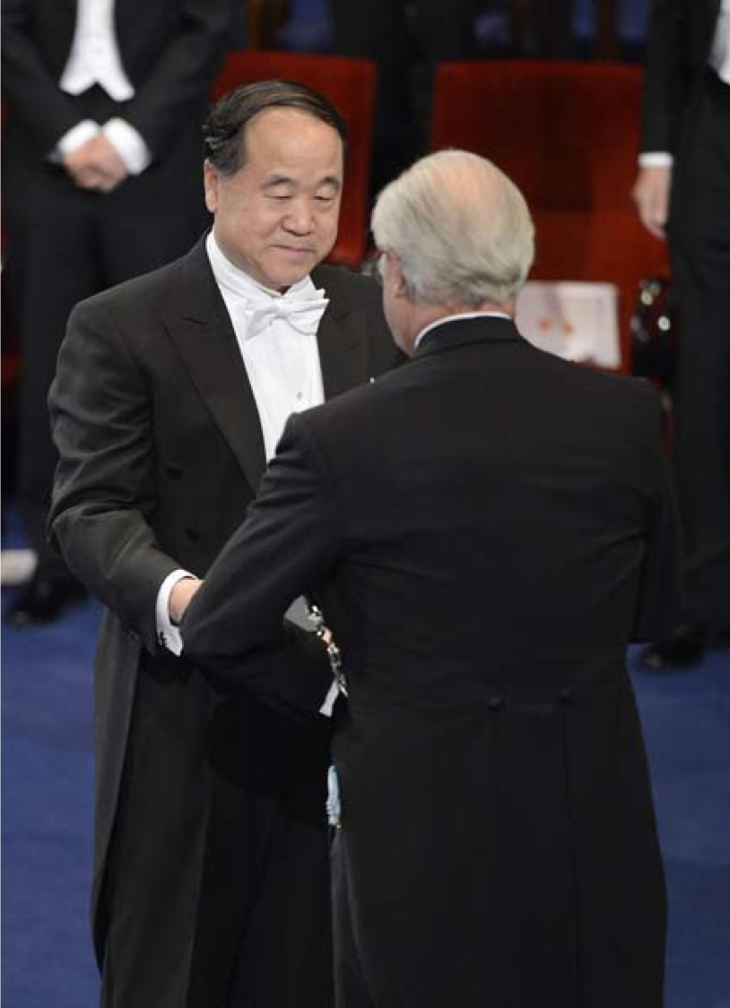 Mo Yan tijdens de Nobelceremonie met de Zweedse koning, december 2012